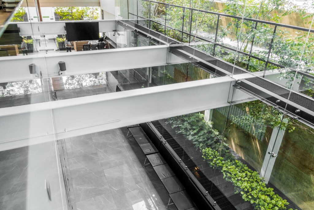 Así desde la concepción, pasamos a la construcción de un edificio masivo en un espacio contenido, en el que la tensión del vacío se rompe con formas que van materializándose de lo etéreo a lo corpóreo, donde podemos viajar de lo artesanal a lo tecnológico en una sutil transición
