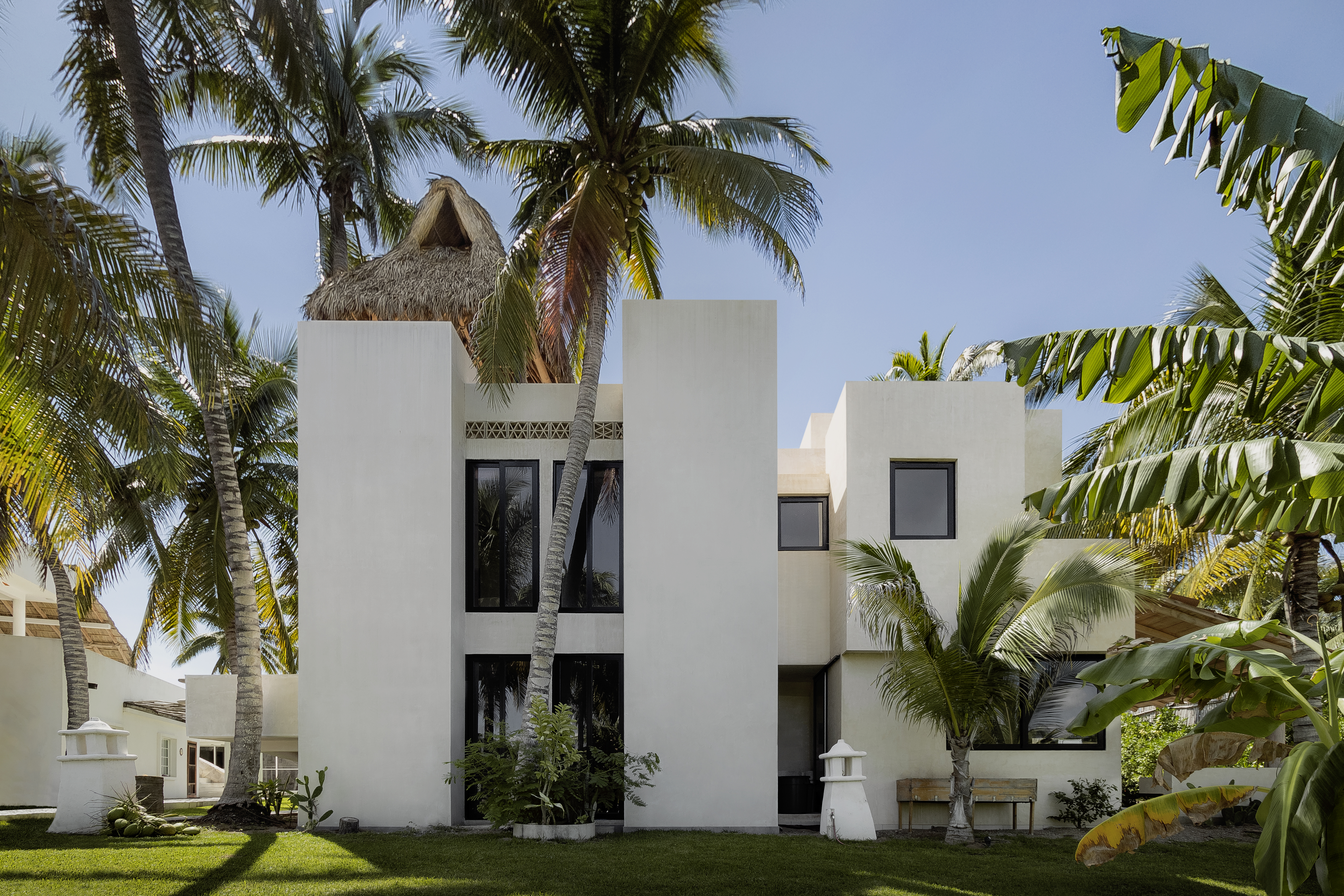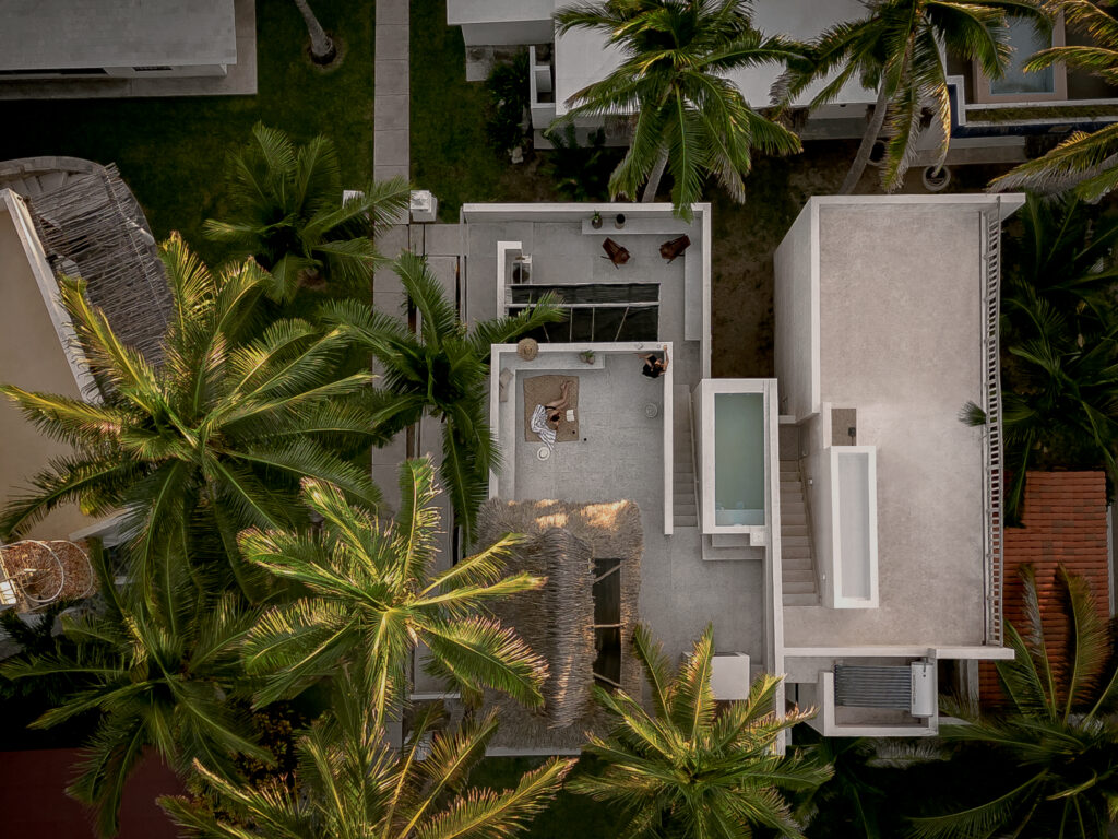 La materialidad y simpleza además de contrastar con las edificaciones inmediatas, nos permite facilitar la limpieza, que el usuario pueda salir a la playa y llegar con arena en los pies sin preocuparse al ingresar, siendo una extensión de la propia naturaleza, la arena, la piedra, el concreto, el pasto, caminar descalzo, sentirse cómodo y relajado.