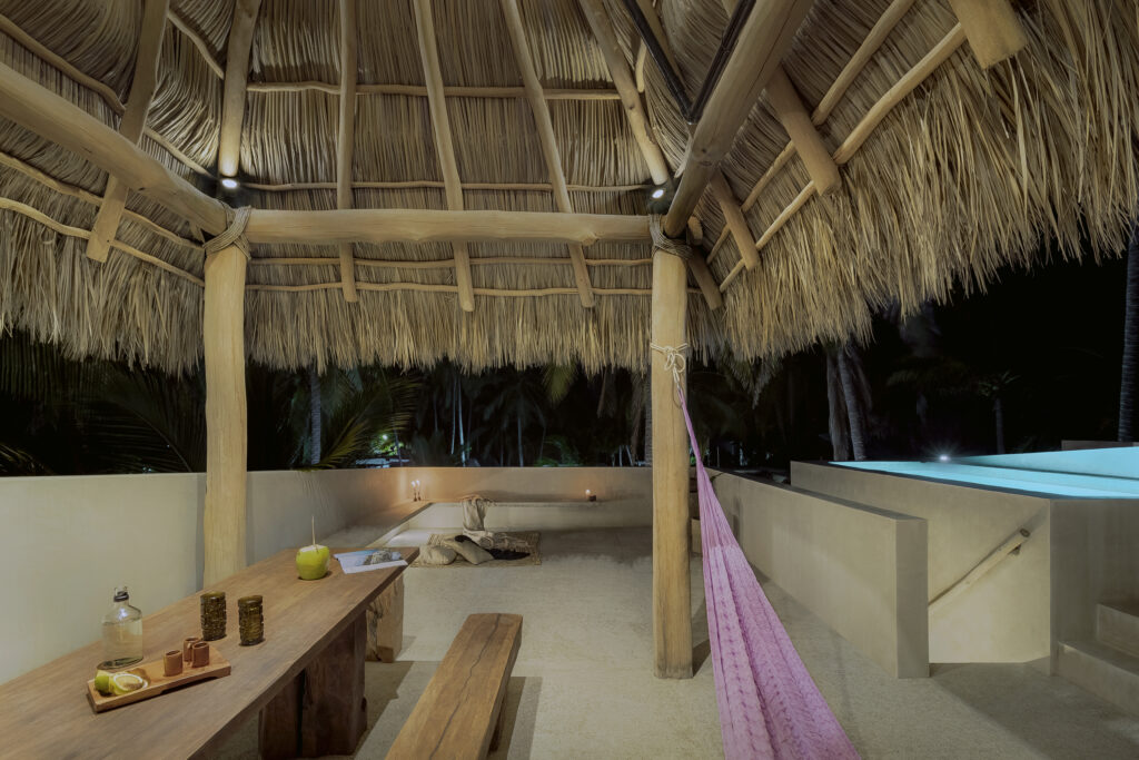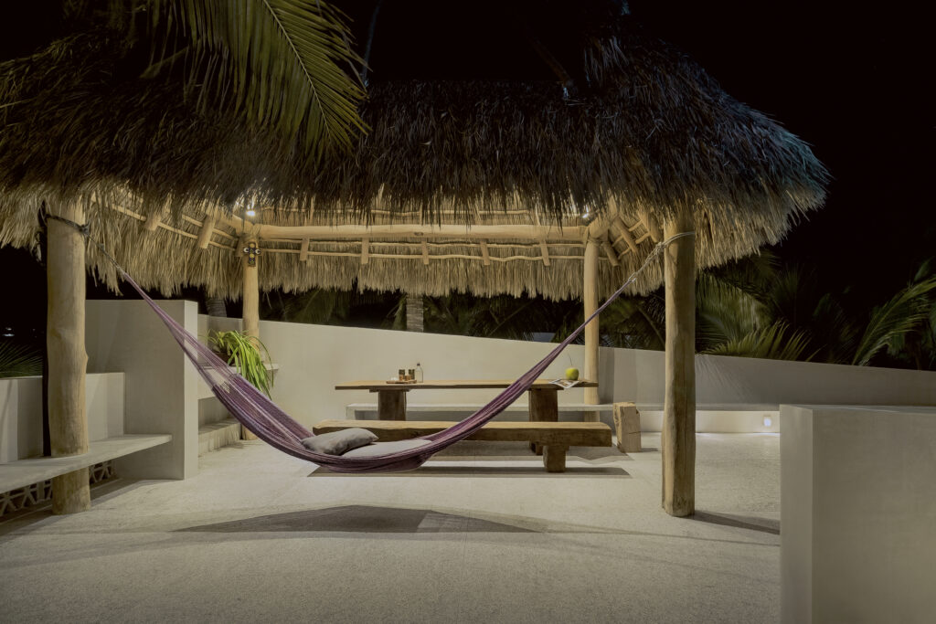 En el último nivel la corona, una palapa y un jacuzzi para disfrutar la imponente vista al mar que azota la playa y unido a la brisa deleita todos los sentidos.