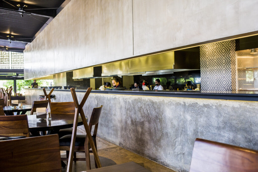 Desde que llegas se percibe una armonía sinestésica, con detalles como la técnica YAKISUGI utilizada en el plafón que nos evoca a través de la vista aromas de horno de leña y sabor ahumado que nos acompañara en todo el recorrido.