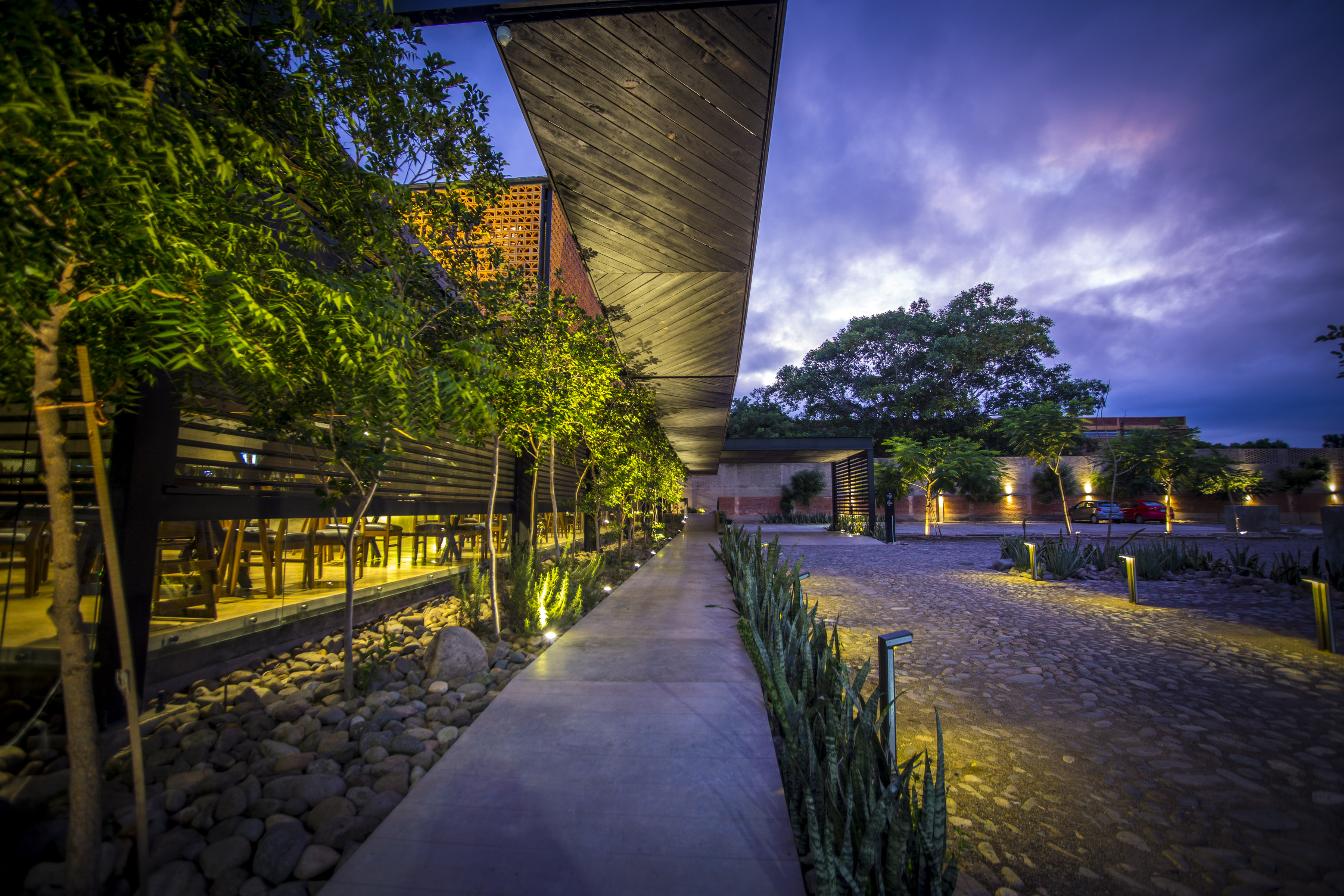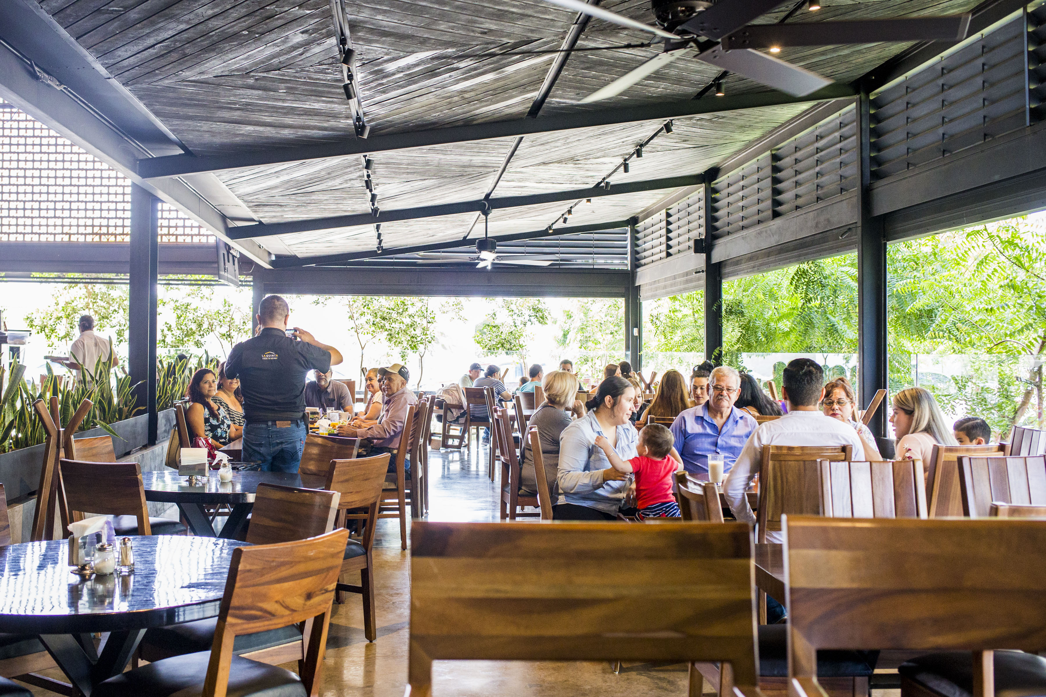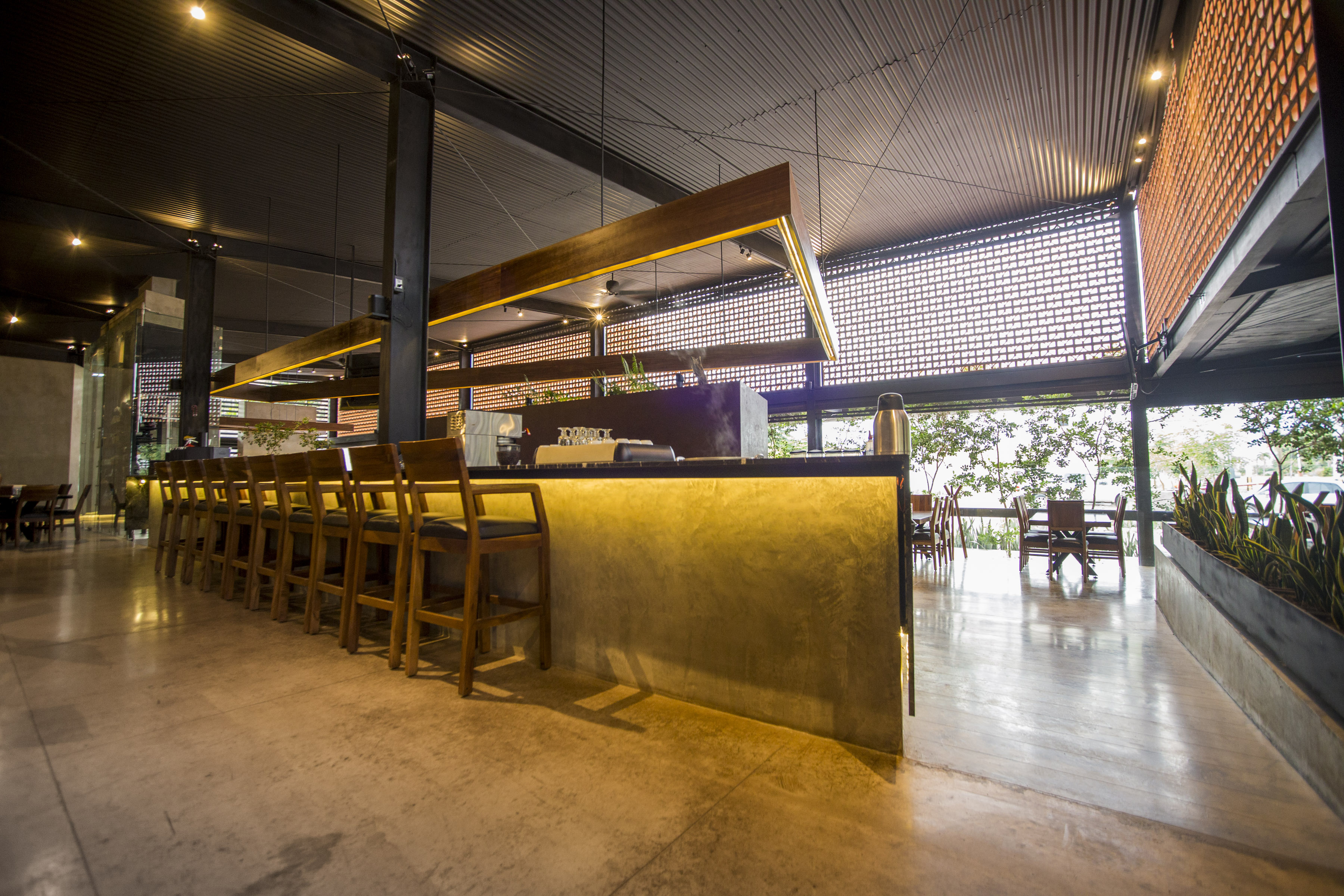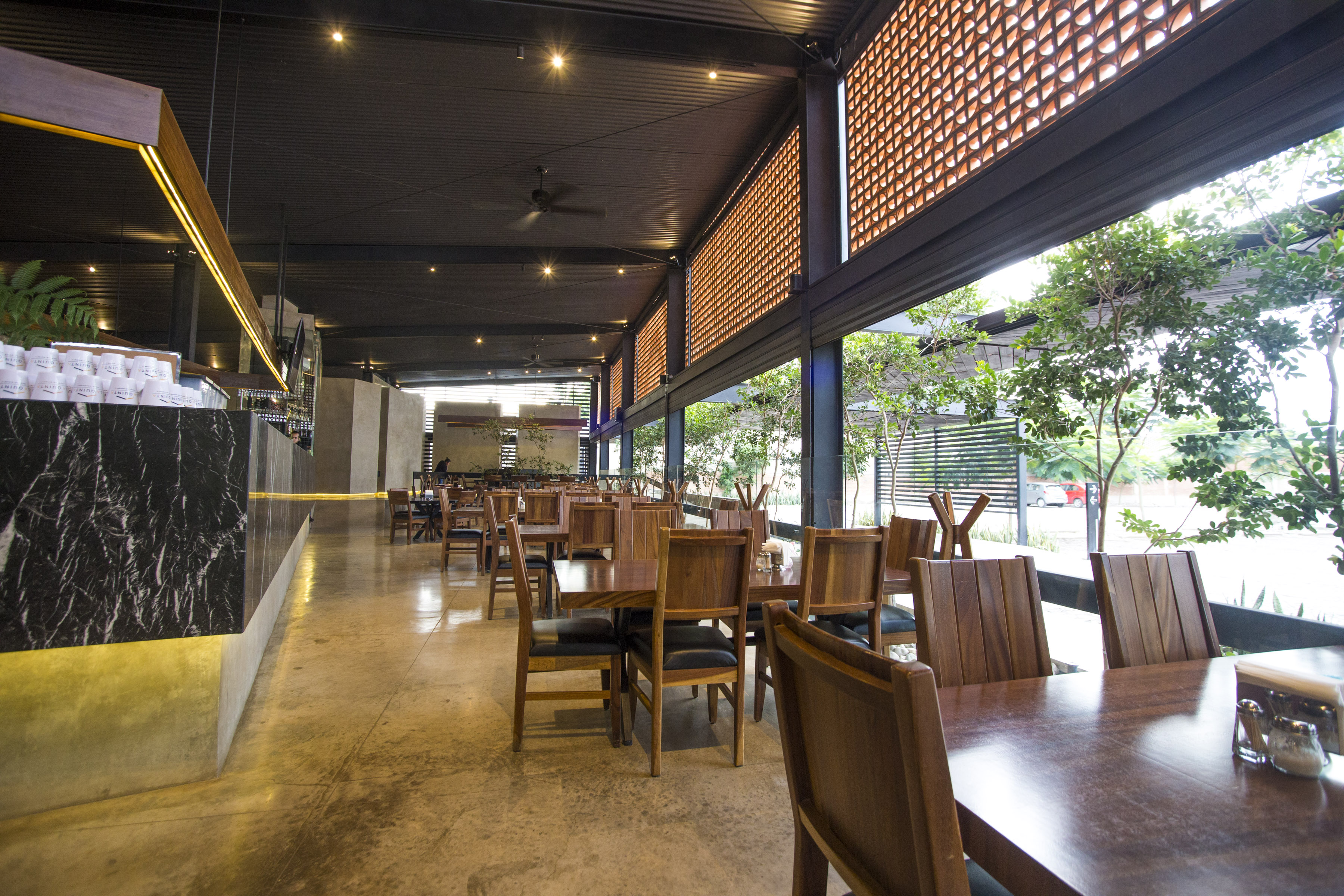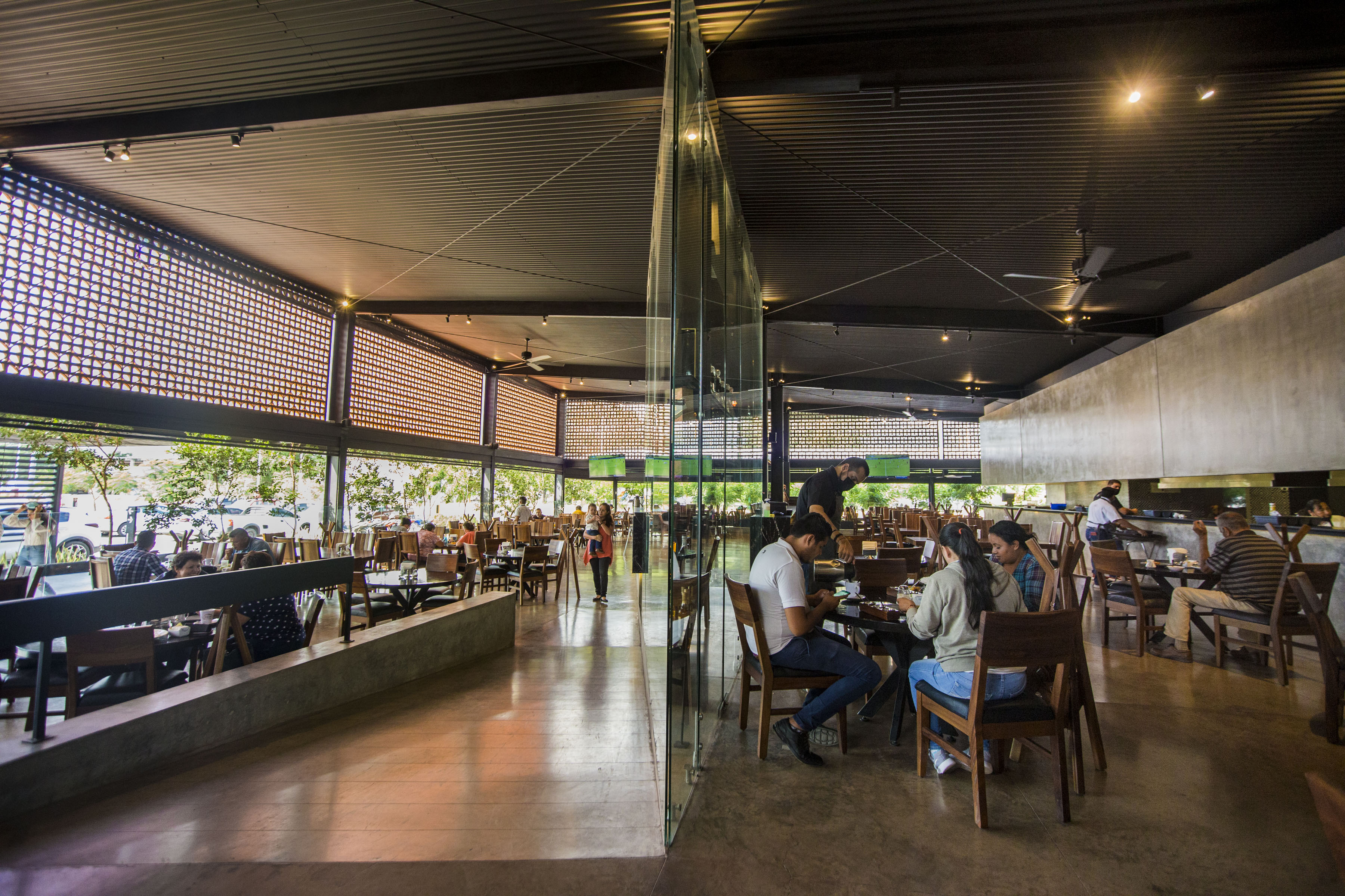Se tiene además una posición privilegiada, el comensal dispone de una vista de 180 grados hacia el exterior, particularmente al ingreso, que se convierte en pasarela, se mezcla pues en el mismo espacio, el estilo, la convivencia y la buena cocina.